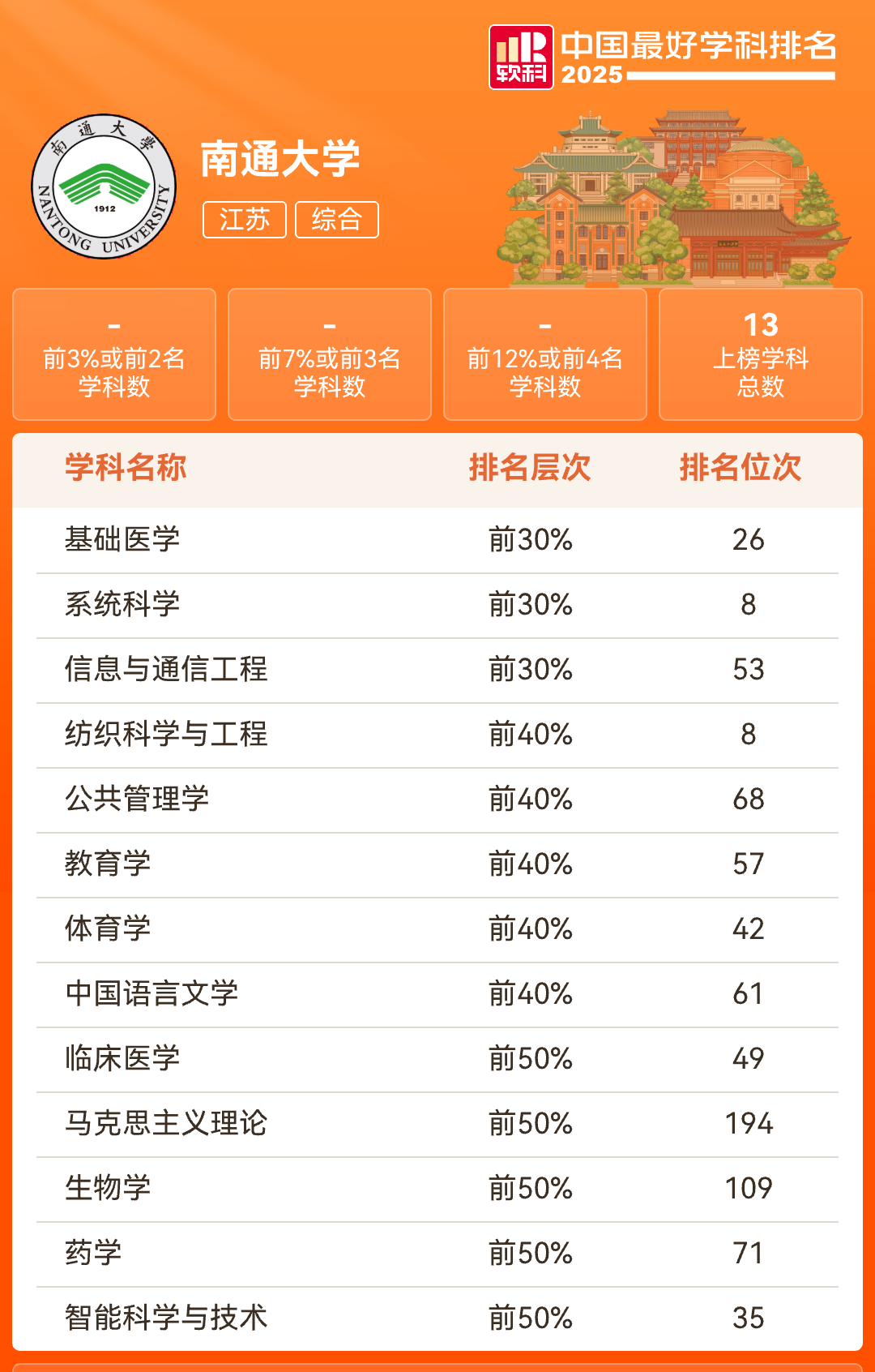 我校13个学科上榜“2025软科中国最好学科排名”