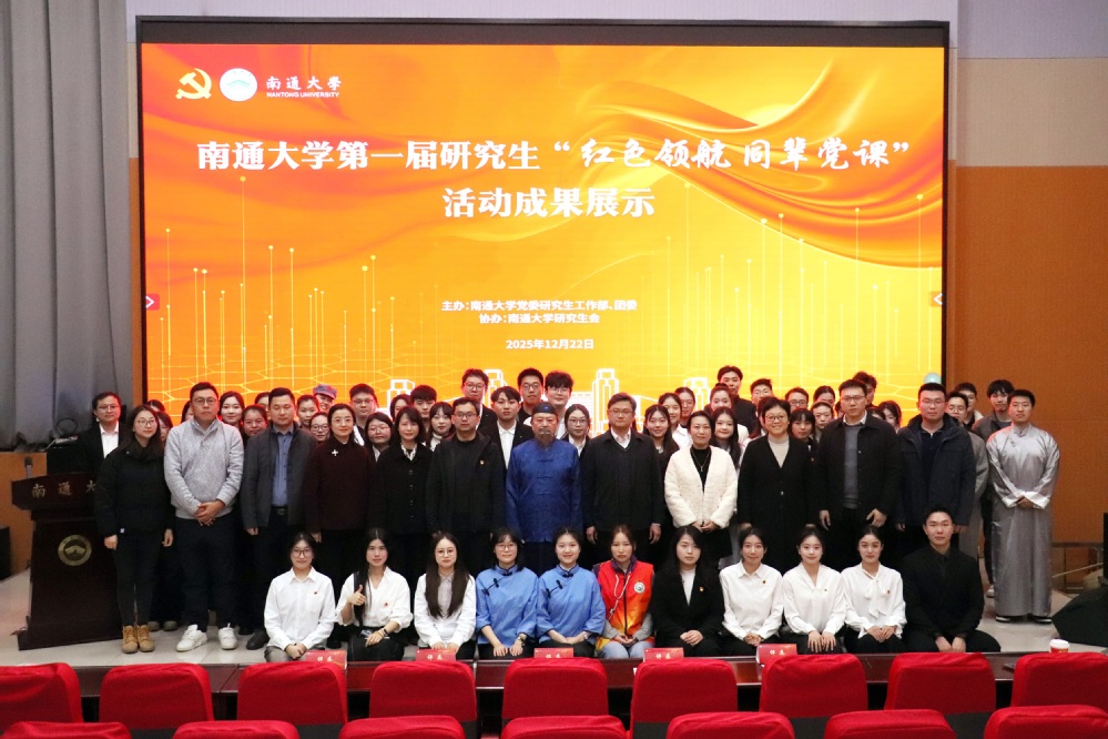 12月22日下午,南通大学第一届研究生“红色领航 同辈党课”成果展示活动成功举办。校党委研究生工作部副部长、研究生院副院长刘俊,校团委副书记葛明政出席活动并讲话,相关职能部门、学院研究生党支部师生代表参加活动。