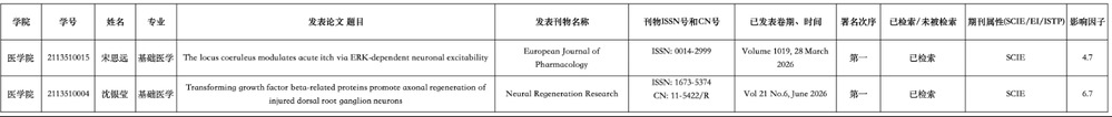 根据《南通大学博士、硕士学位授予工作实施细则(修订)》〔通大学位〔2024〕22号〕及《南通大学关于申请博士、硕士学位科研成果的规定》〔通大学位〔2020〕15号〕,现对拟申请2026年3月授予学位的博士研究生科研成果进行公示如下: